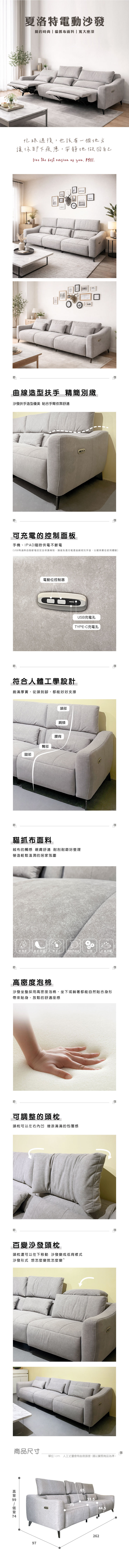 夏洛特電動沙發 大三人位【2326】品歐家具