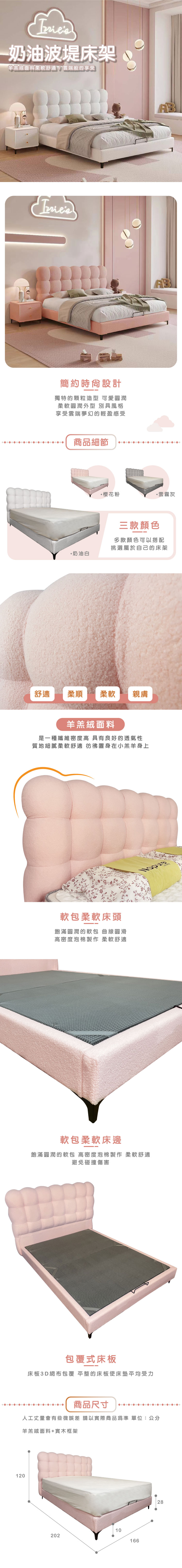 奶油波堤床架【A003-BD】品歐家具