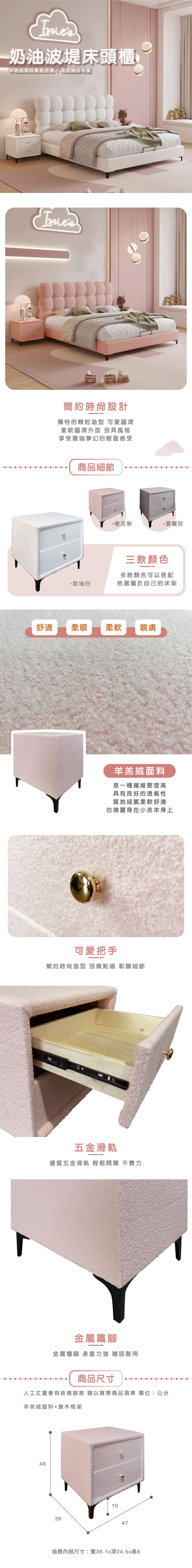 奶油床頭櫃【A003-CA】品歐家具