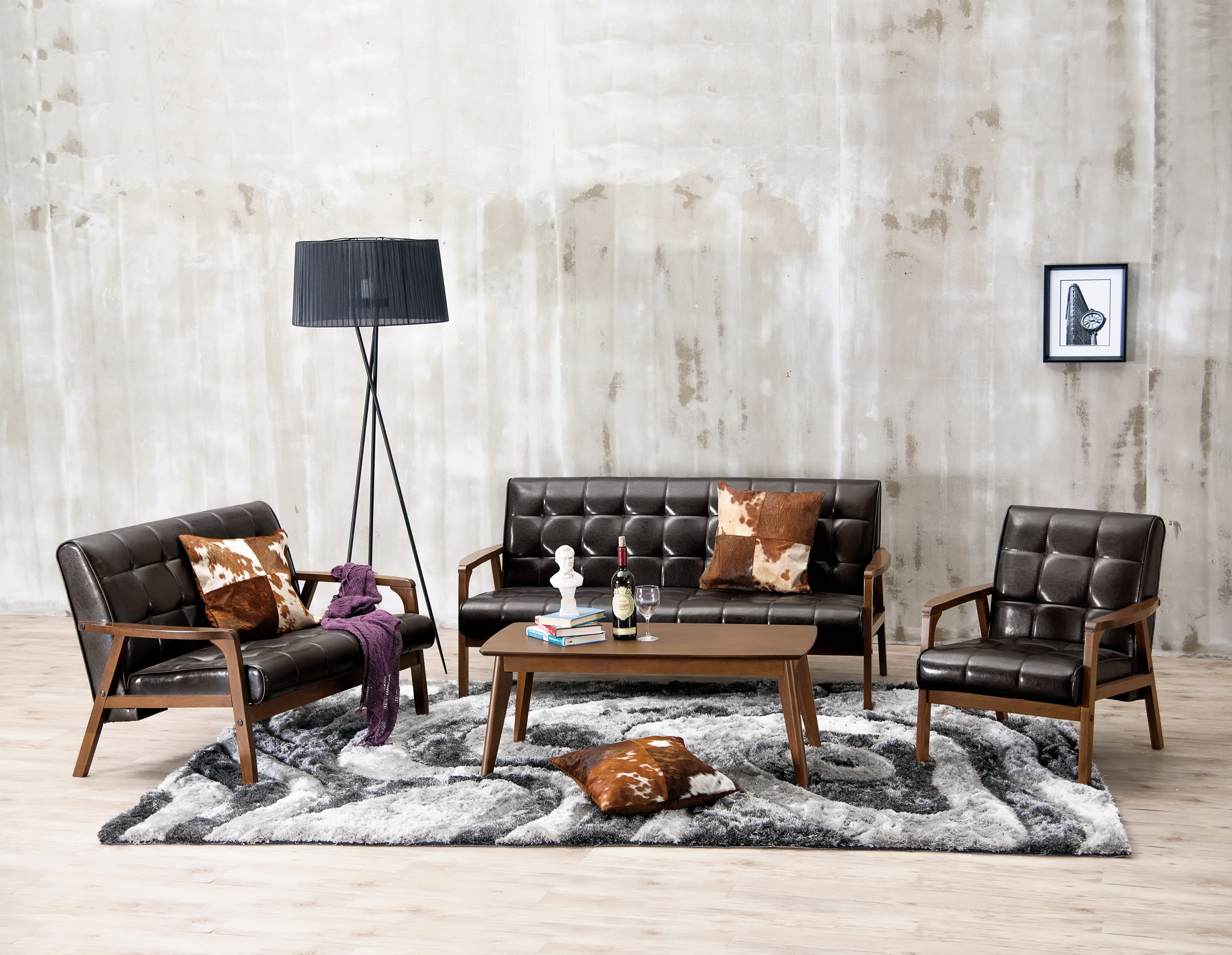 材質:高級皮革+高密度泡棉+橡膠木實木
