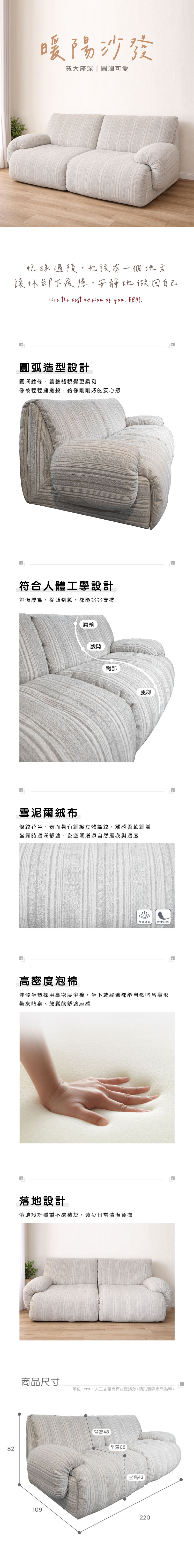 暖陽沙發 雪泥爾絨布 三人位【D8066】品歐家具