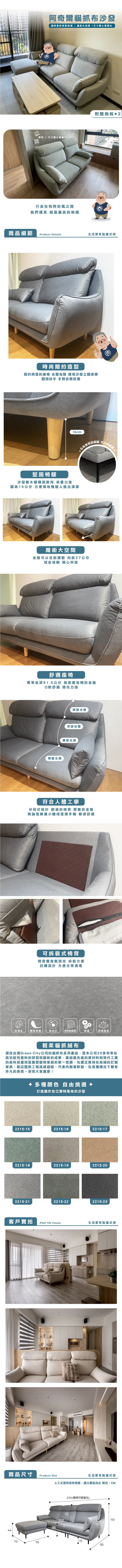 阿奇爾貓抓布沙發 四人位/L型【PO-SGD03】品歐家具
