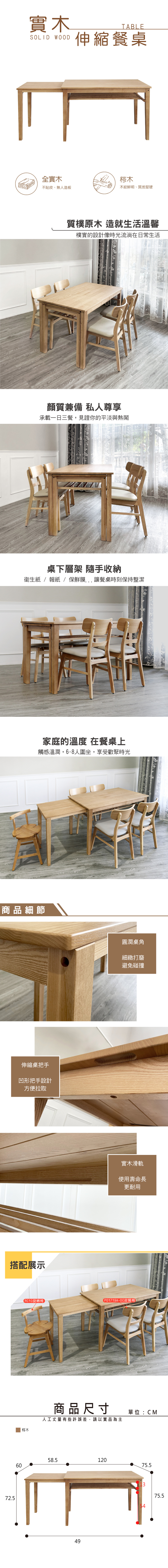 伸縮實木餐桌【RC15】品歐家具